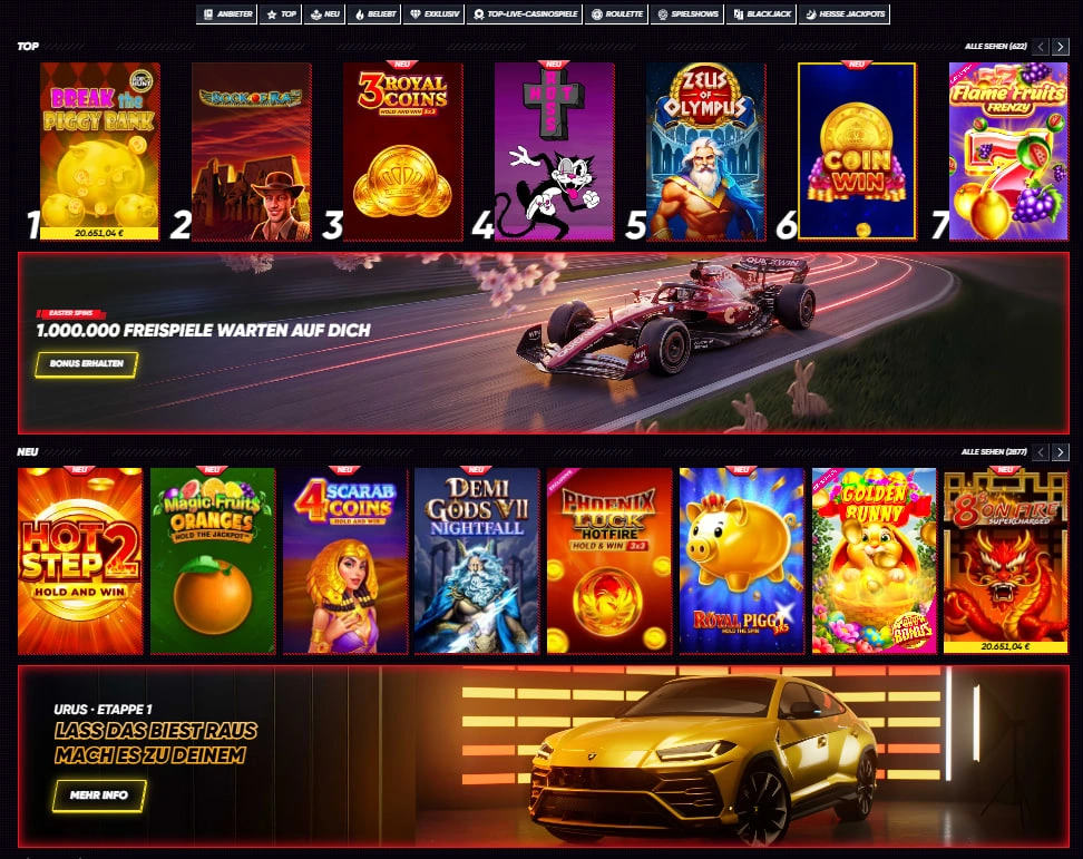 Über 5.000 Slot-Maschinen, darunter progressive Jackpots, Megaways-Slots und klassische Früchteslots. Mit täglichen neuen Releases bleibt das Spielerlebnis immer frisch.